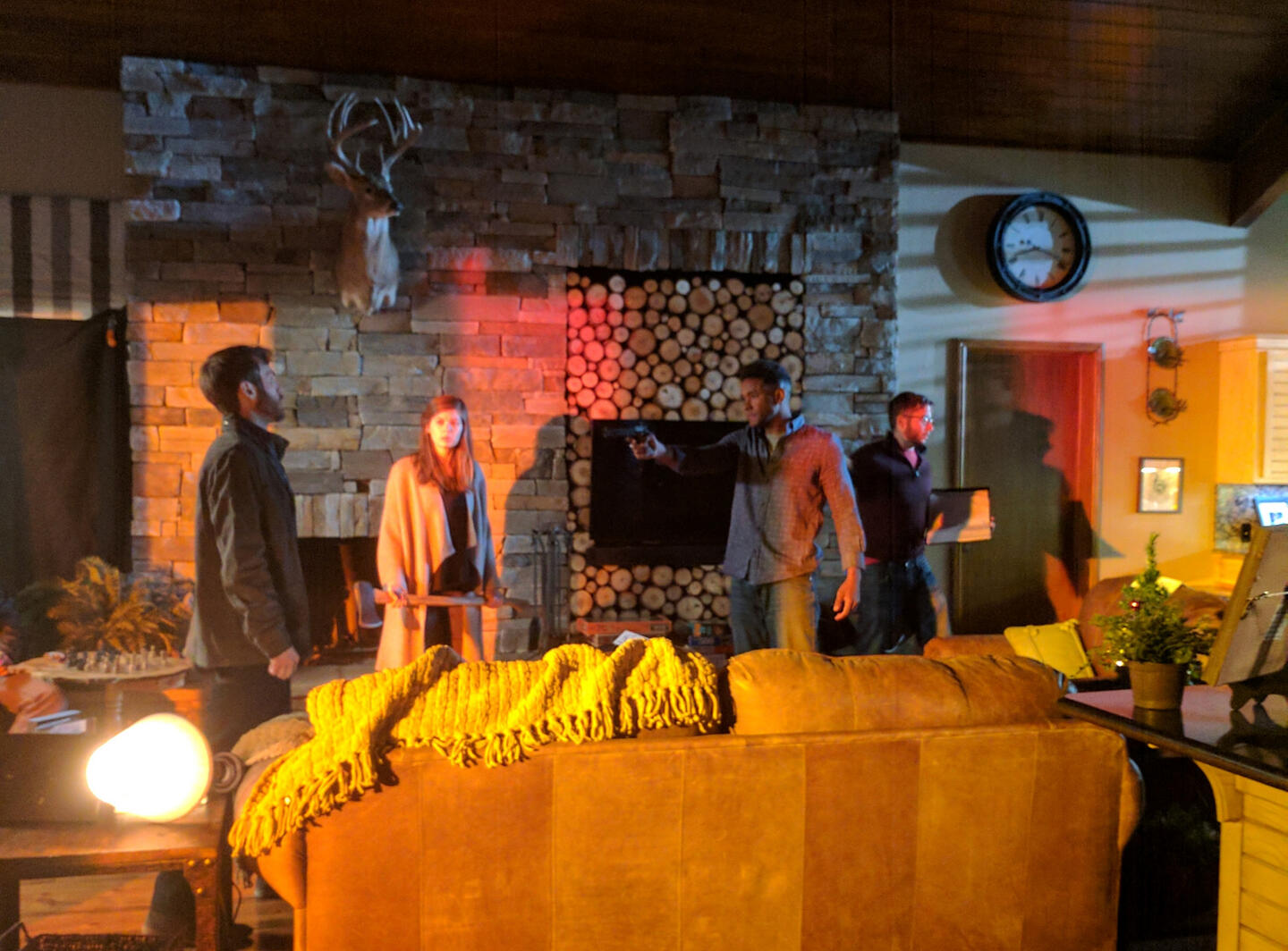 Simulated sunset using colored gels. "Home With A View Of The Monster," The Greenlee Brothers, 2019.